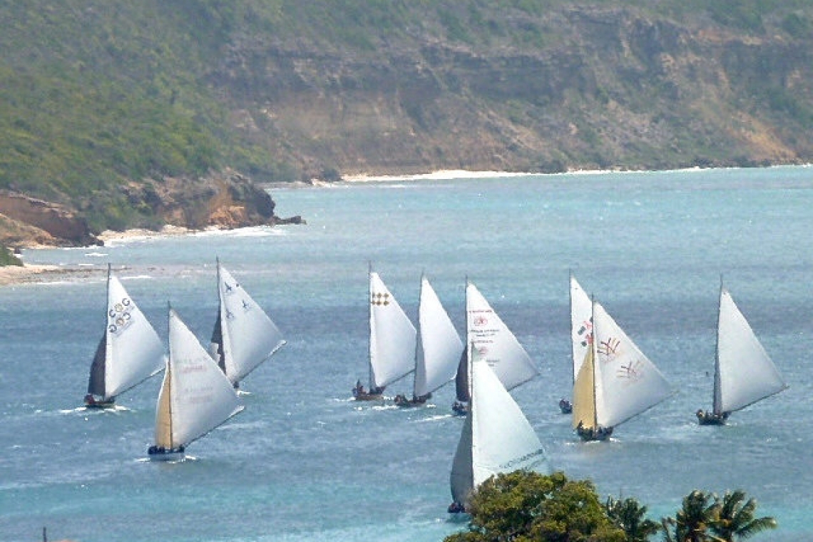 Anguilla racing boats at the start of a race from Sandy Ground.