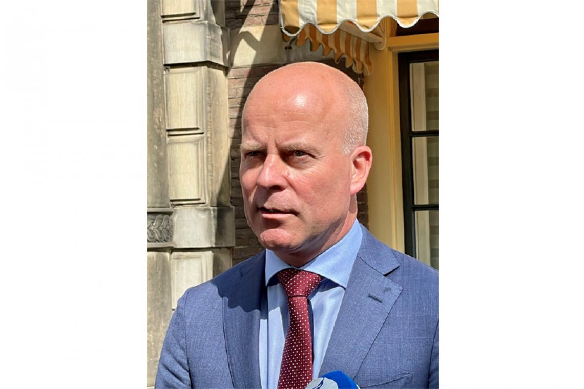 Caretaker State Secretary of Home Affairs and Kingdom Relations Raymond Knops being interviewed by the media in The Hague last month. (Suzanne Koelega photo)