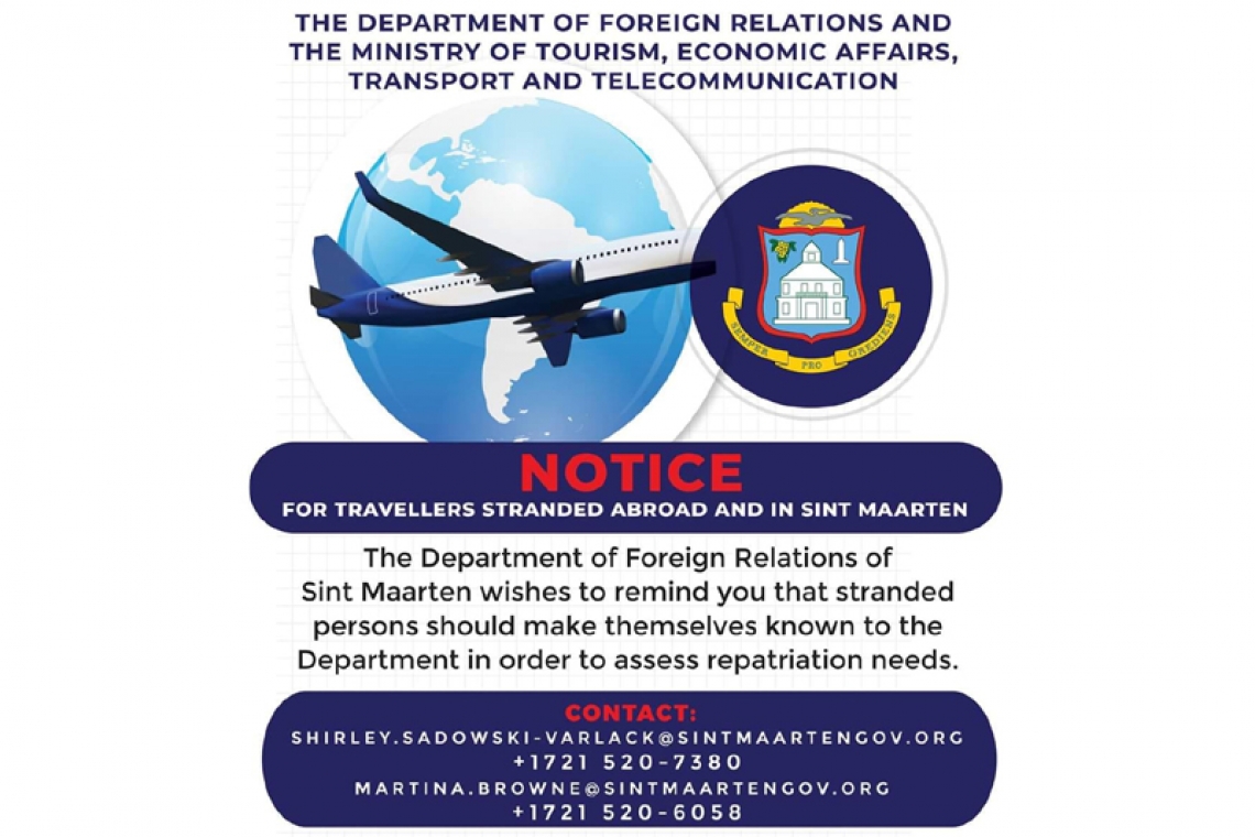 The Ministry of TEATT continues to collaborate in order to arrange the possibility for a repatriation flight from the Dominican Republic. More information will be forthcoming once the plans have been finalized. For updates and the latest information, visit the Ministry of TEATT’s Facebook page: Ministry of TEATT SXM, and monitor our website stmaartenupdates.com.