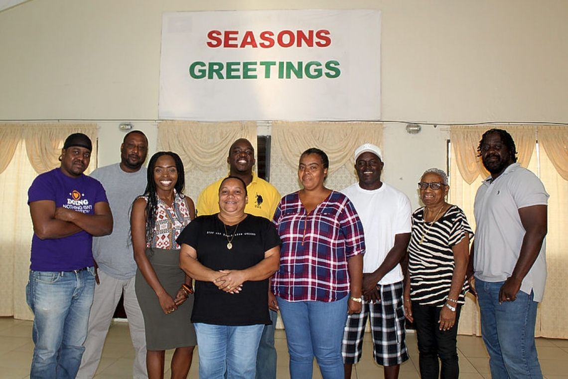 Members of the newly-formed St. Eustatius Carnival Committee (from left) Ortix Spanner, Elisbert Schmidt, Charmaine George, Petra Lens, Ché “DJ Sense” Farrell, Claudette Spanner, committee president Marlon Hook, Amanda Schmidt and Dwayne “Butch” Lindo.\\