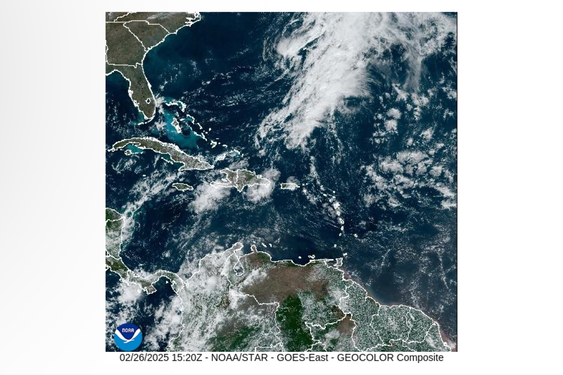 An approaching frontal system is influencing conditions over the region. However, a high-pressure system will suppress significant precipitation, while maintaining light to moderate winds across the island. Meanwhile, a trough enters the area overnight and morning showers are expected.