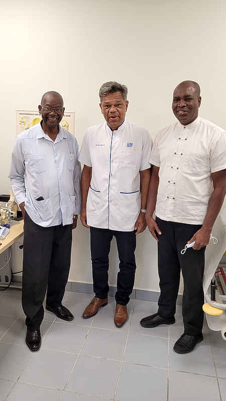 From left: Dr. Anthony Gordon, Dr. Luke Mercelina and Pastor Virgil Sams after a courtesy call to Dr. Mercelina at St. Maarten Medical Center.