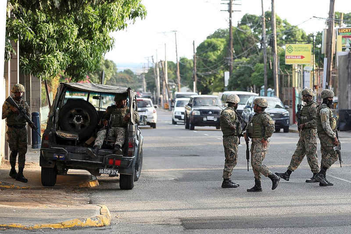 Members of security forces guarded the streets as Jamaican Prime Minister Andrew Holness on Tuesday, November 15, declared a state of public emergency in parts of the capital Kingston, and in some parishes in the central and western parts of the country, in a bid to control rising crime linked to gang violence. Photo: Reuters/Gilbert Bellamy.
