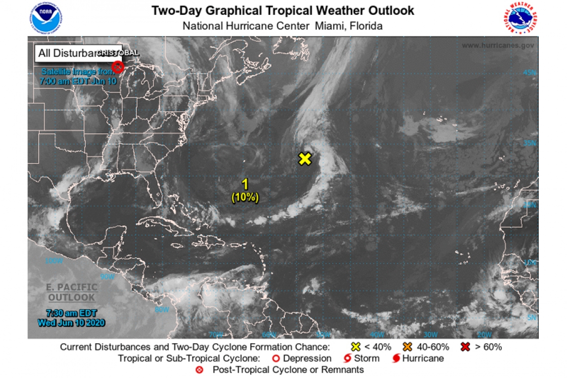 - A non-tropical area of low pressure is located over the central Atlantic Ocean several hundred miles east of Bermuda. Development of this system as a subtropical cyclone is not expected due to unfavorable environmental conditions, and the low is forecast to dissipate on Thursday when it begins to move slowly westward.