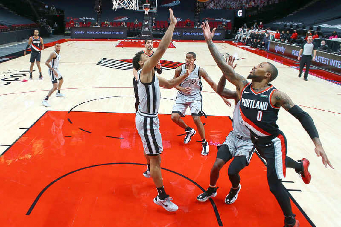 The Spurs ran their lead to as many as 10 points in the third quarter, at 70-60 on a layup by DeRozan at the 7:57 mark, before Portland rallied to tie the game at 78 on Lillard's drive five minutes later. San Antonio took an 87-82 advantage into the final quarter.