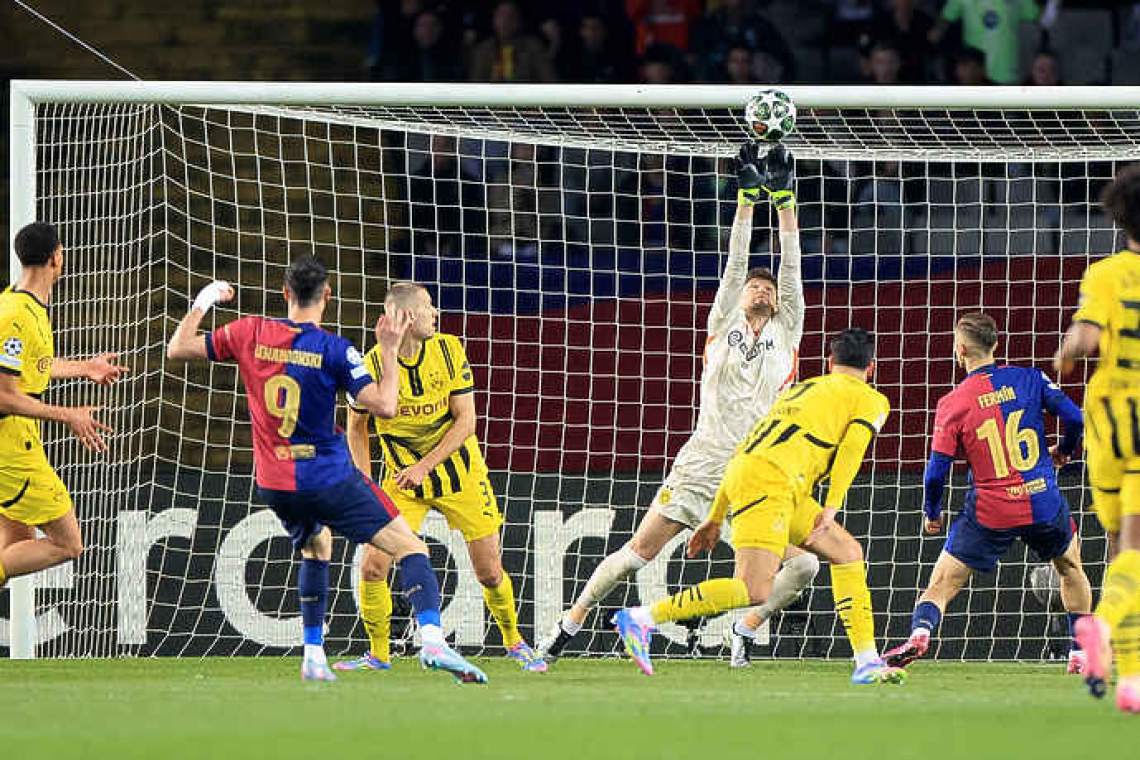 On Wednesday, Dortmund keeper Kobel denied Lewandowski and Yamal from close-range, but there was little he could do when Raphinha fired over the goalline in the 26th minute.