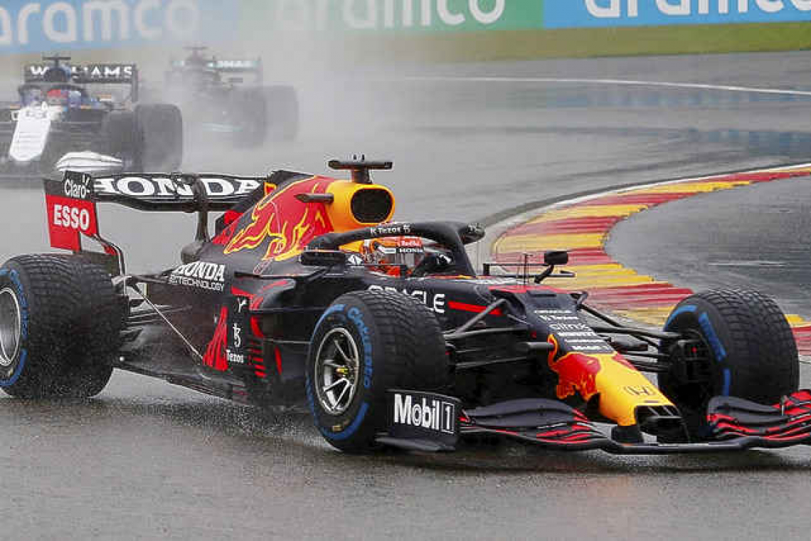 BELGIUM- - Red Bull's Max Verstappen won Formula One's shortest race on Sunday with the rain-hit Belgian Grand Prix red-flagged after three laps behind the safety car and half-points awarded for only the sixth time ever.