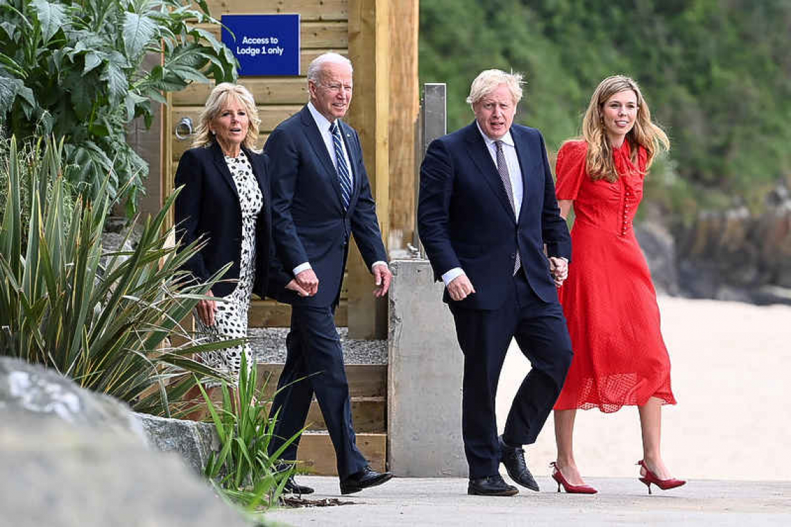 The two leaders appeared relaxed as they admired the view across the Atlantic alongside their wives, with Jill Biden wearing a jacket embroidered with the word "LOVE". "It’s a beautiful beginning," she said.