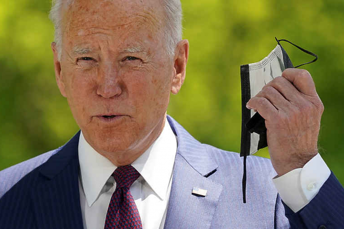 President Joe Biden emerged at the White House for remarks without a mask. "I think it's a great milestone, a great day," he said.