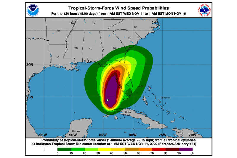Interests elsewhere along the Gulf Coast of Florida should monitor the progress of Eta. Additional warnings may be required along portions of the Florida Peninsula today.